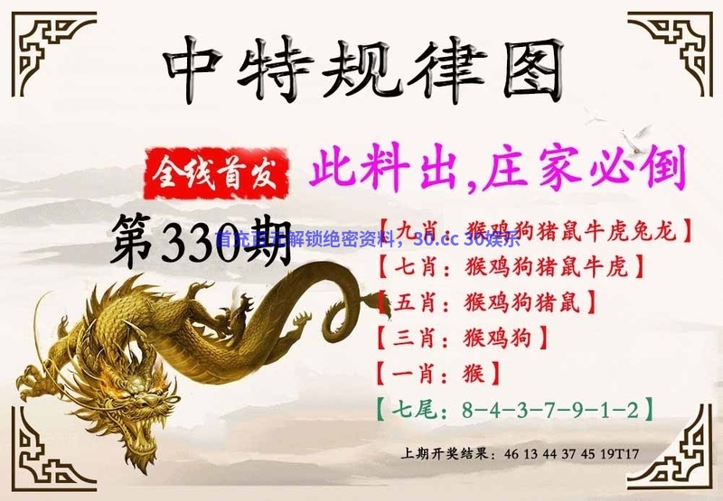 330期:九肖★蛇龙兔狗猴虎牛鼠★开:马36中